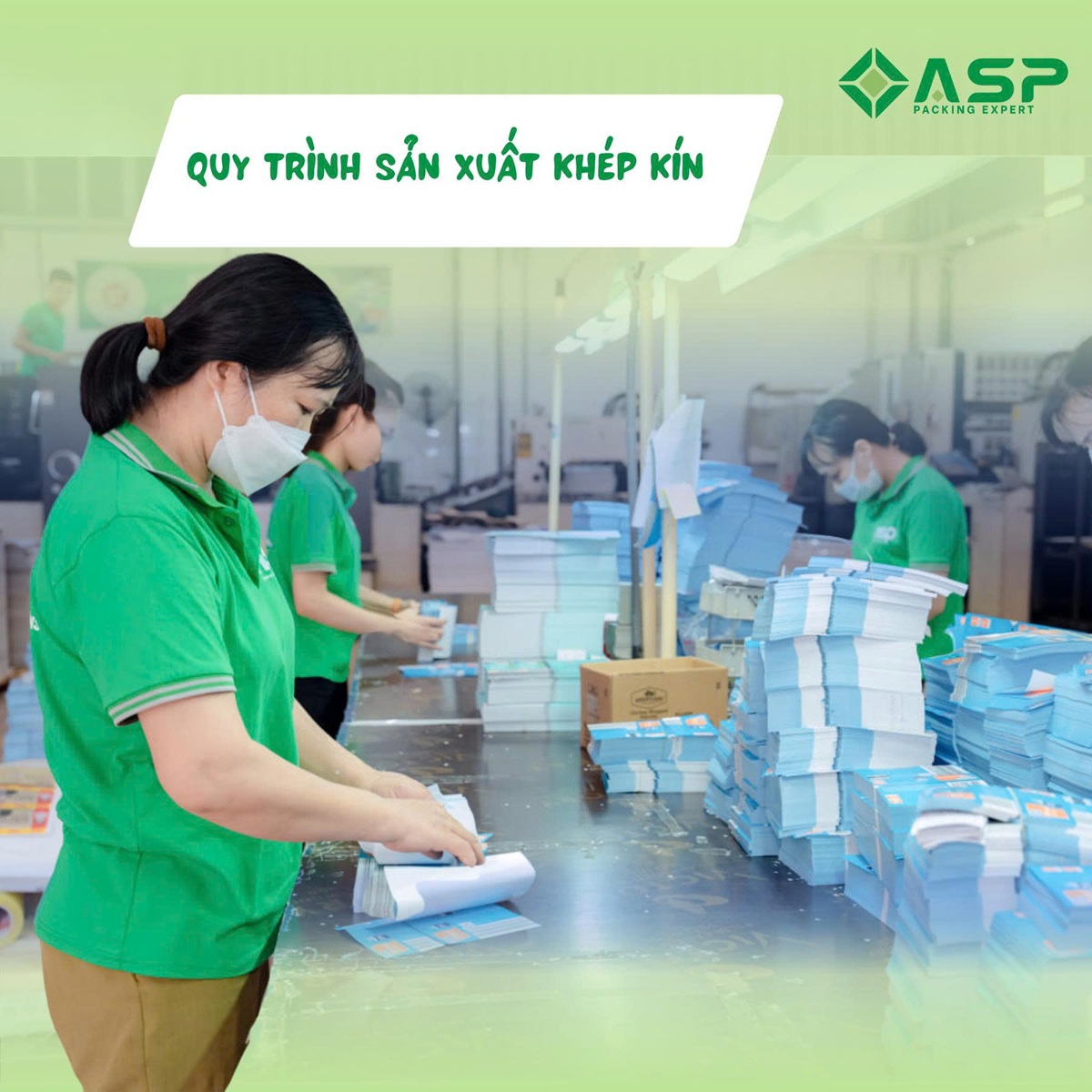 Ngoài sở hữu công nghệ in ấn chuyên nghiệp, ASP đảm bảo với các doanh nghiệp toàn bộ quy trình từ cắt giấy, in ấn, bế, dán, ghim, kiểm định đều được thực hiện tại nhà máy của ASP. Điều này giúp kiểm soát chặt chẽ chất lượng đầu ra, giảm thiểu sai sót và tiết kiệm chi phí cho khách hàng.