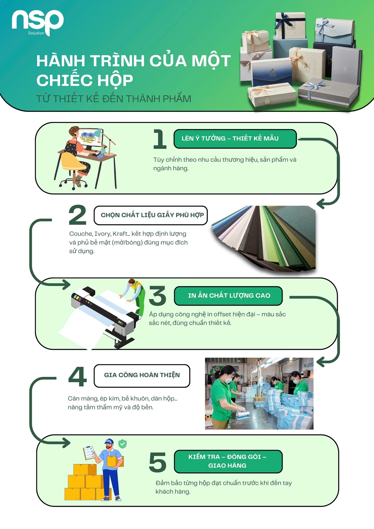- Thứ nhất, dịch vụ phải trọn gói, nghĩa là không chỉ bán thùng, mà phải đồng hành từ lúc lên ý tưởng đến khi sản phẩm hoàn thiện, có thể hỗ trợ thiết kế, tư vấn hình dáng, quy cách, in ấn, và cả giao hàng đúng hạn.