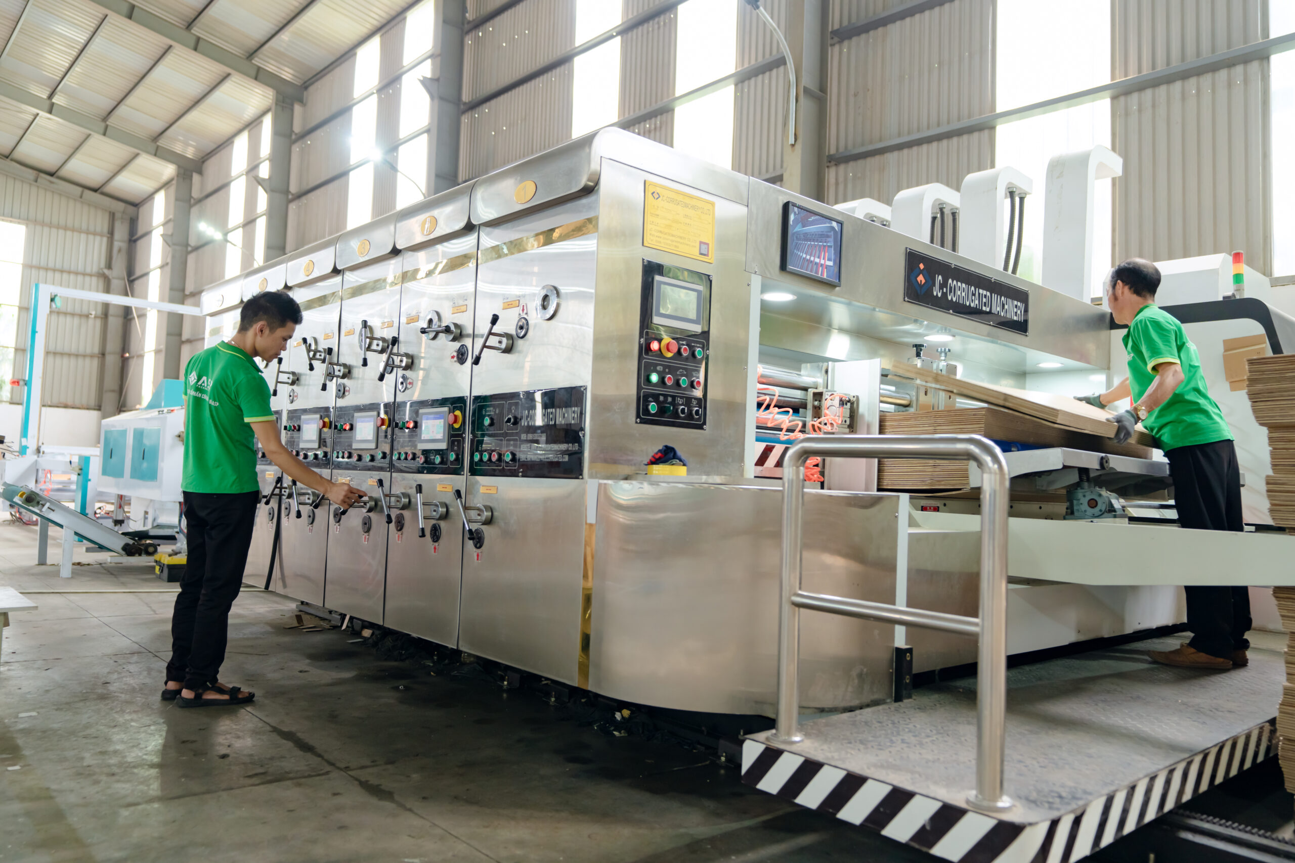 - Hệ thống máy in Flexo hiện đại: In cuộn tốc độ cao, chất lượng ổn định.
