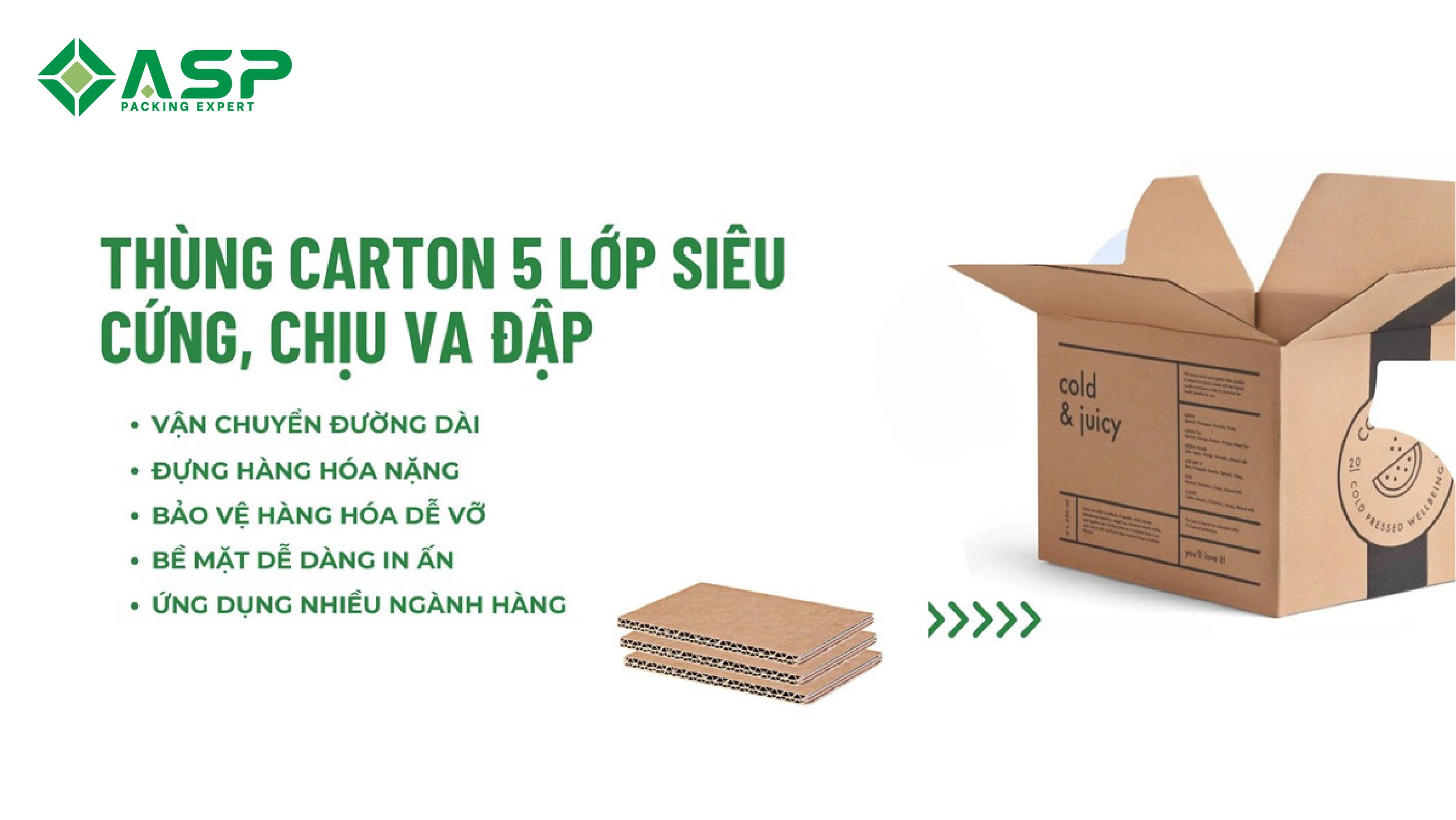 Bảo vệ hàng hóa tuyệt đối, nâng tầm thương hiệu. Đó là những gì bạn sẽ nhận được khi lựa chọn thùng carton 5 lớp siêu cứng, chống va đập. Không còn lo lắng về rủi ro hư hỏng, không còn tốn kém vì hàng hóa đổi trả. Hãy cùng ASP Packing khám phá bí quyết đằng sau khả năng siêu chịu lực và chống va đập hoàn hảo của loại thùng carton cao cấp này, để việc đóng gói của bạn trở nên chuyên nghiệp và hiệu quả hơn bao giờ hết!