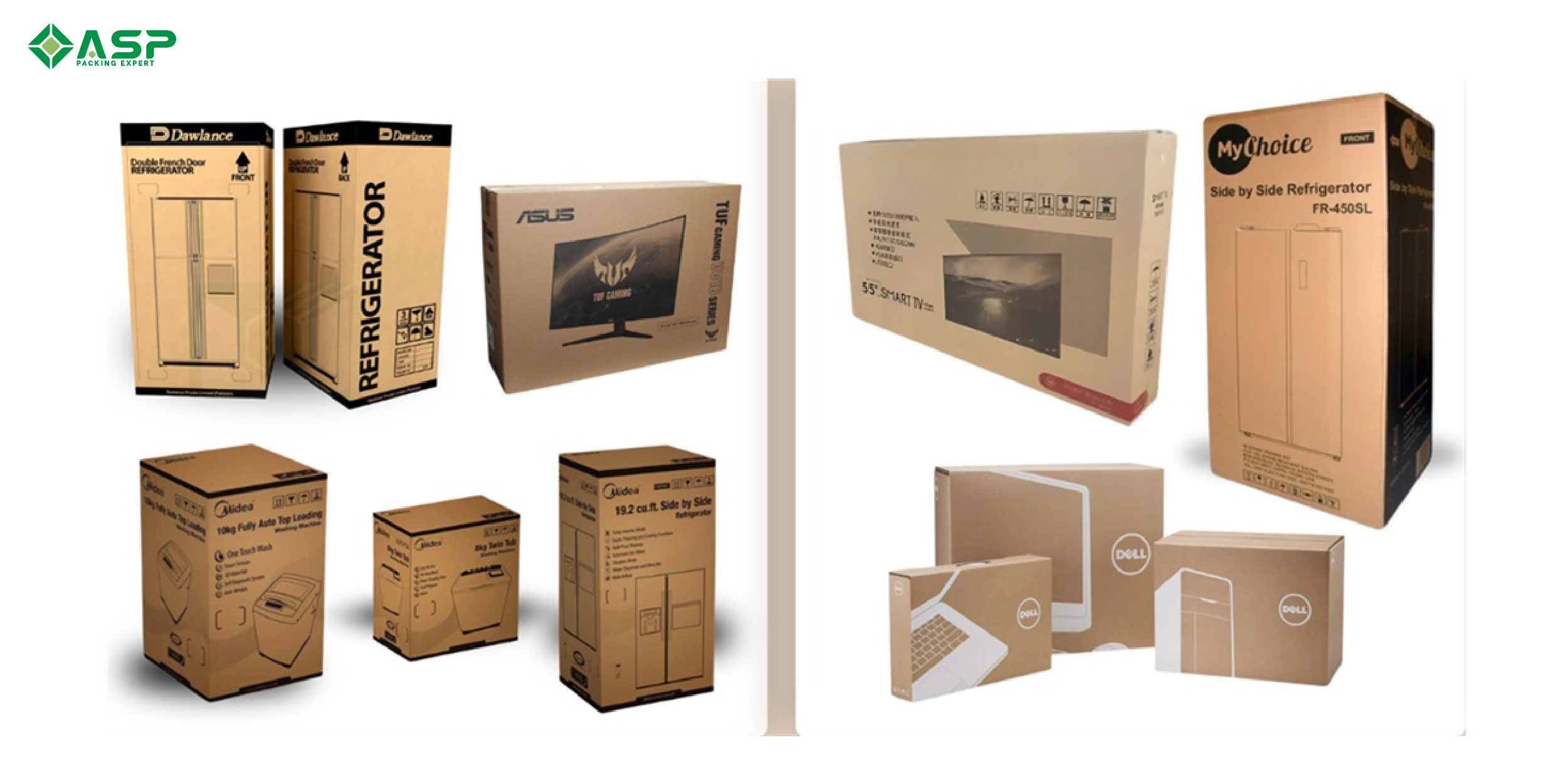 Ngành điện tử, linh kiện máy móc: Đóng gói TV, máy tính, tủ lạnh, máy giặt, motor công nghiệp, và các loại linh kiện điện tử nhạy cảm. Nhờ độ dày 5 lớp bảo vệ khỏi các cú sốc và rung lắc mạnh trong quá trình vận chuyển, đặc biệt quan trọng khi xuất khẩu qua đường biển hoặc đường hàng không.